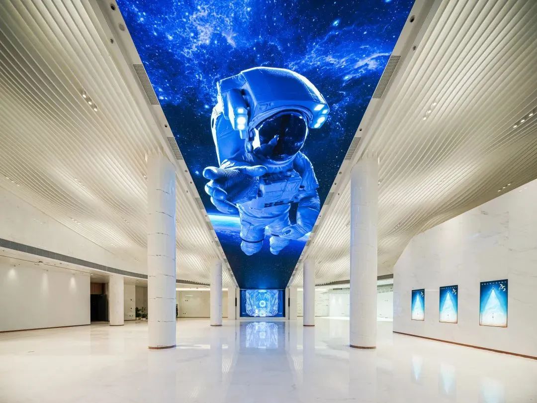 从影城大门踏入,影城大堂处拥有裸眼3D效果的“0号厅”成为不少市民的首要打卡点。伫立在巨型高定制LED天幕周围,是“东方鱼肚白”色的大理石立柱,“每根都不一样”。日出东方鱼肚白,这一中国传统颜色介于白色和淡粉色、淡青色之间,给人以素净、高雅之感。