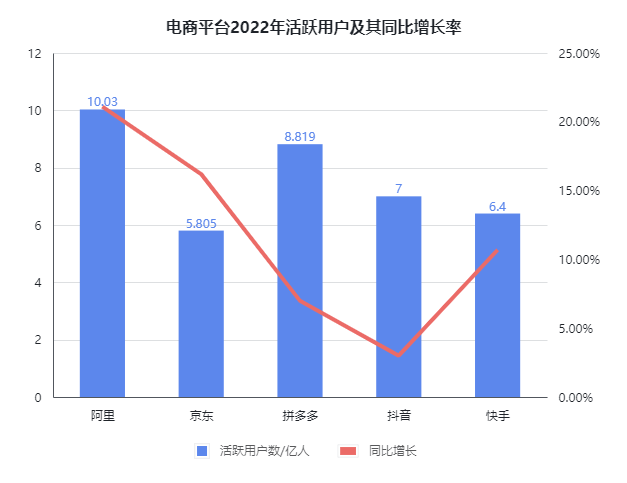 根据2022年各电商公开数据统计,京东年活跃购买用户数为5.805亿,同比增长16.2%;阿里巴巴集团国内市场年度活跃消费者已超10亿,同比增长16.2%;拼多多年活跃购买用户约为8.819亿人,同比增长7%;抖音年平均活跃用户数超7亿,同比增长3%;快手平均年活跃用户达6.4亿,同比增长10.7%。但相较于前些年,平台活跃用户增速已呈下降趋势,加之生育率的下降,流量红利的时代即将过去,平台更要加快用户心智夺取的策略了。