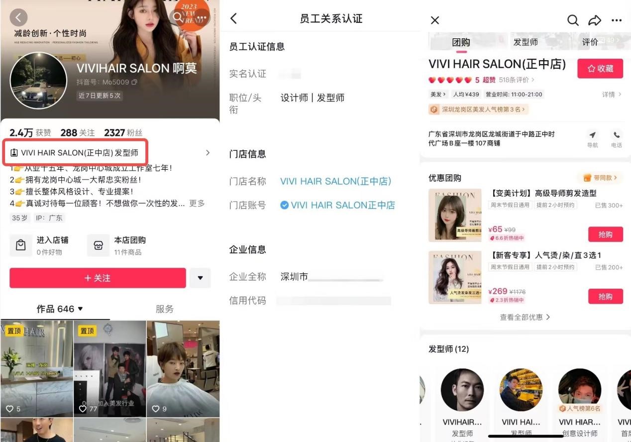 职人指的是将企业自己的员工,发展为具备短视频和直播能力的内容创作者,也就是培养自己的“达人”。商家可通过为手艺人、教练、技师等账号进行认证授权,使相关账号能拥有为商家营销推广能力而不被限流,进而令商家获得长期曝光的流量获取工具以及品牌宣传阵地。