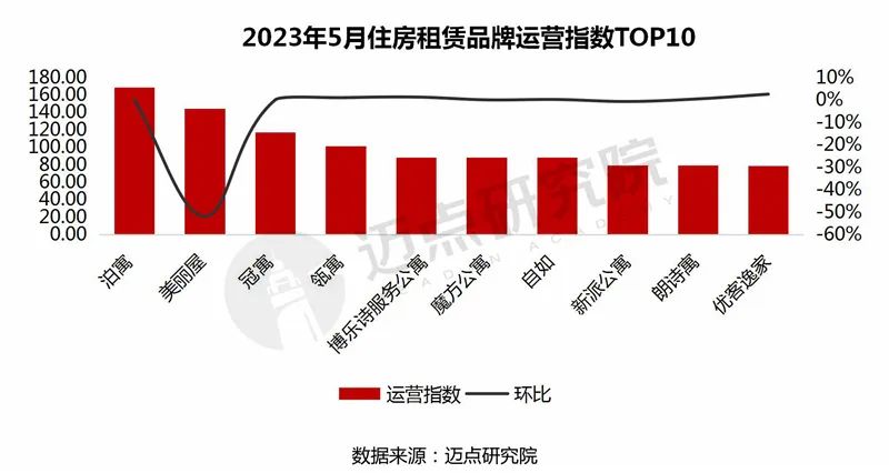 本月运营指数排名前十的依次是:泊寓、美丽屋、冠寓、瓴寓、博乐诗服务公寓、魔方公寓、自如、新派公寓、朗诗寓、优客逸家。其中,运营突出表现品牌为瓴寓,其运营指数达到101.54,位列运营指数第4名。