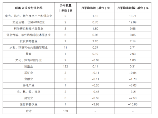 据数据统计,5月份安徽辖内上市公司分行业整体情况,电力、热力、燃气及水生产和供应业月平均涨幅最大,平均 18.71%。住宿和餐饮业月平均跌幅最大,平均10.85%。