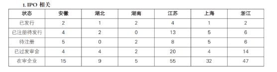 安徽IPO相关情况如下,已发行企业2家,已注册待发行4家,待注册5家,已过发审会4家,在审企业15家。本月辖区内上市2项,获批发文1项。