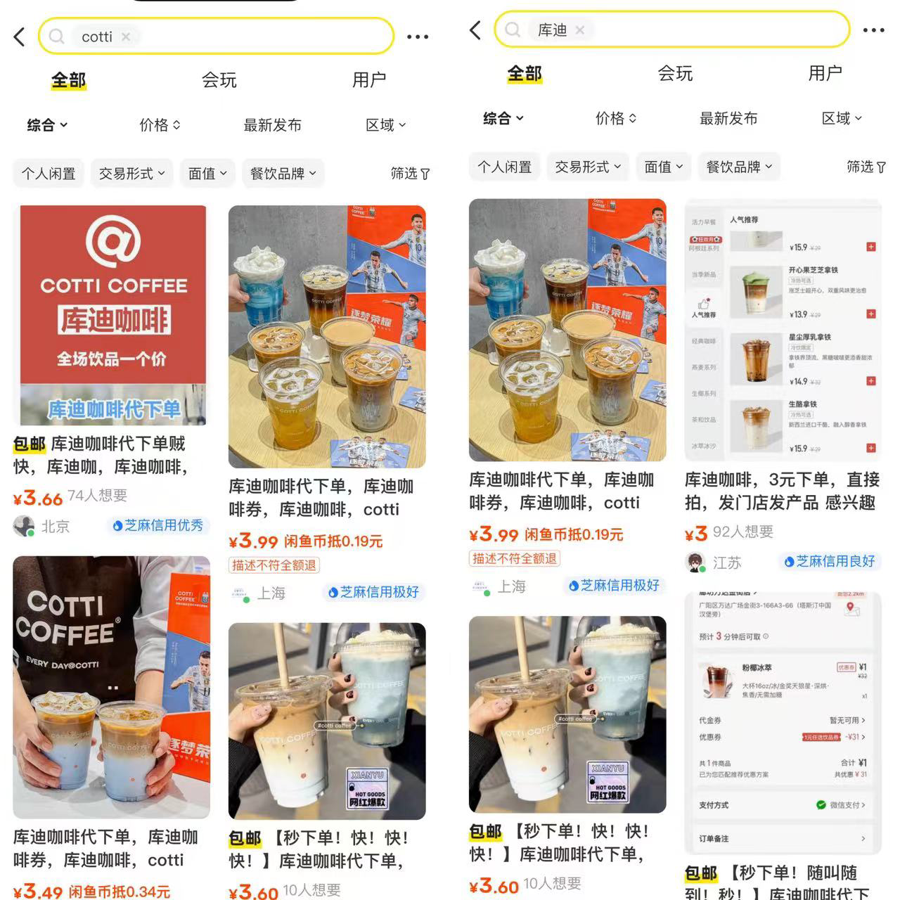 一个有意思的对比是,库迪的“1元全场购”活动,门店冷清闲鱼热闹,但瑞幸在店数突破10000家开启“杯杯都赚钱”的9.9元万店庆祝活动时,因为爆单还出现了小程序崩溃的插曲。
