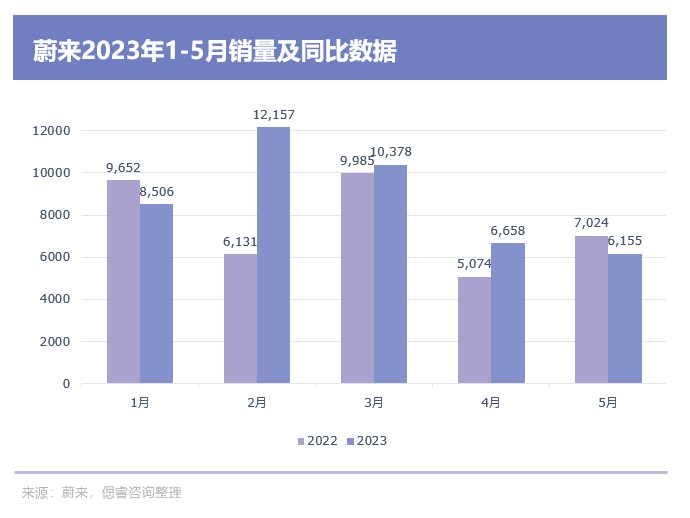 可以看到,蔚来2023年自2月开始,销量一直倒退: