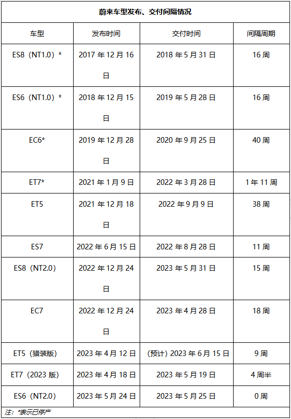 这表明蔚来交付管理水平依然存在问题。此外,尽管蔚来各车型从正式发布到交付的时间跨度一直在缩减,但是过往历史表明,其供应链管理能力,也无法确保交付过程中不出幺蛾子。
