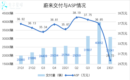 销量方面,一季度蔚来汽车销量31041辆,同比增长20.5%。由于NT1.0平台车型进入去库存末期,影响了该季度交付情况。