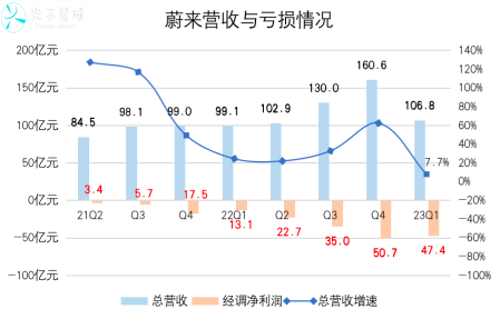 数据显示,一季度公司营收为106亿元,同比增长7.7%。平台切换与新车上市,因此亏损面有所扩大,经调整净利润亏损41.5亿元,去年同期亏损13.1亿元。大约每卖一辆车,就会亏损13.4万元。