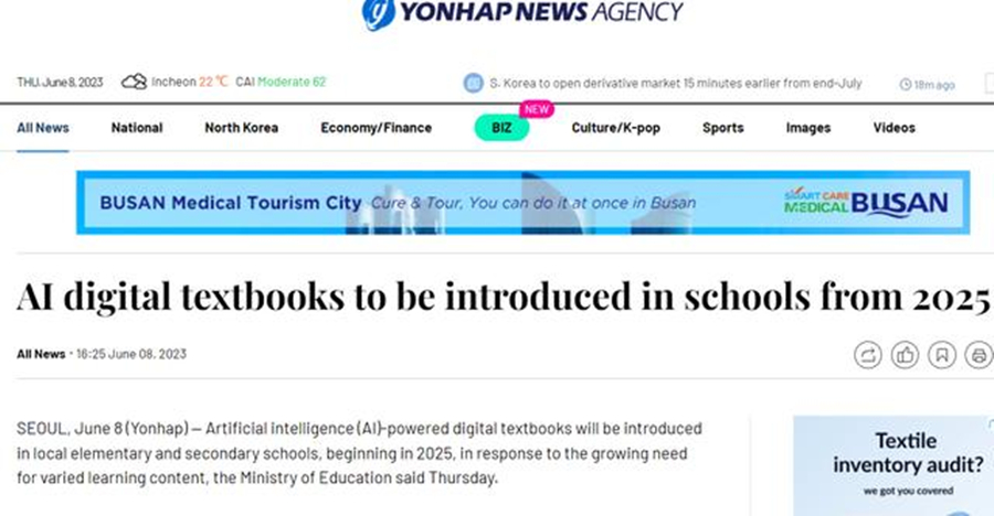 据韩联社报道,韩国教育部周四宣布,从2025年开始获得AI赋能的数字教科书将进入中小学课堂,以满足学生“个性化学习”的需求。这是什么意思呢?