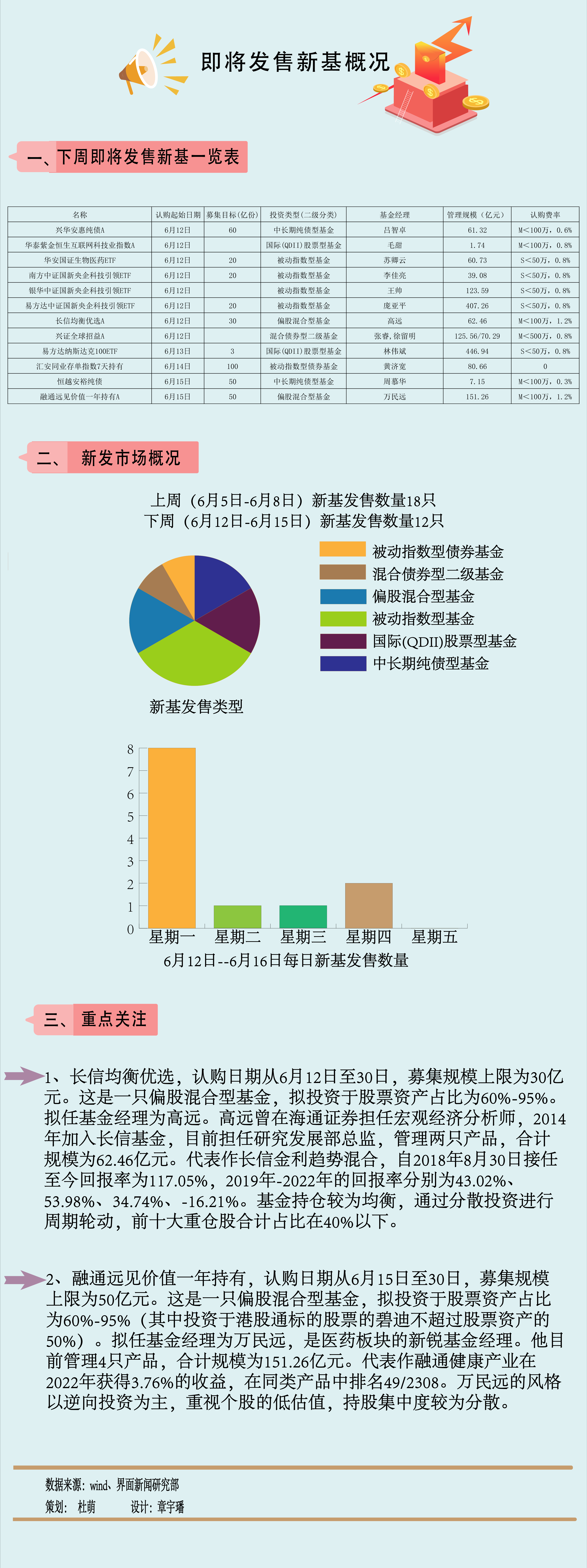 下周,仅有12只新基金等待发行,相比三月初的30余只不足半数。其中仅有两只主动权益类产品,分别是长信基金的高远和融通基金的万民远。