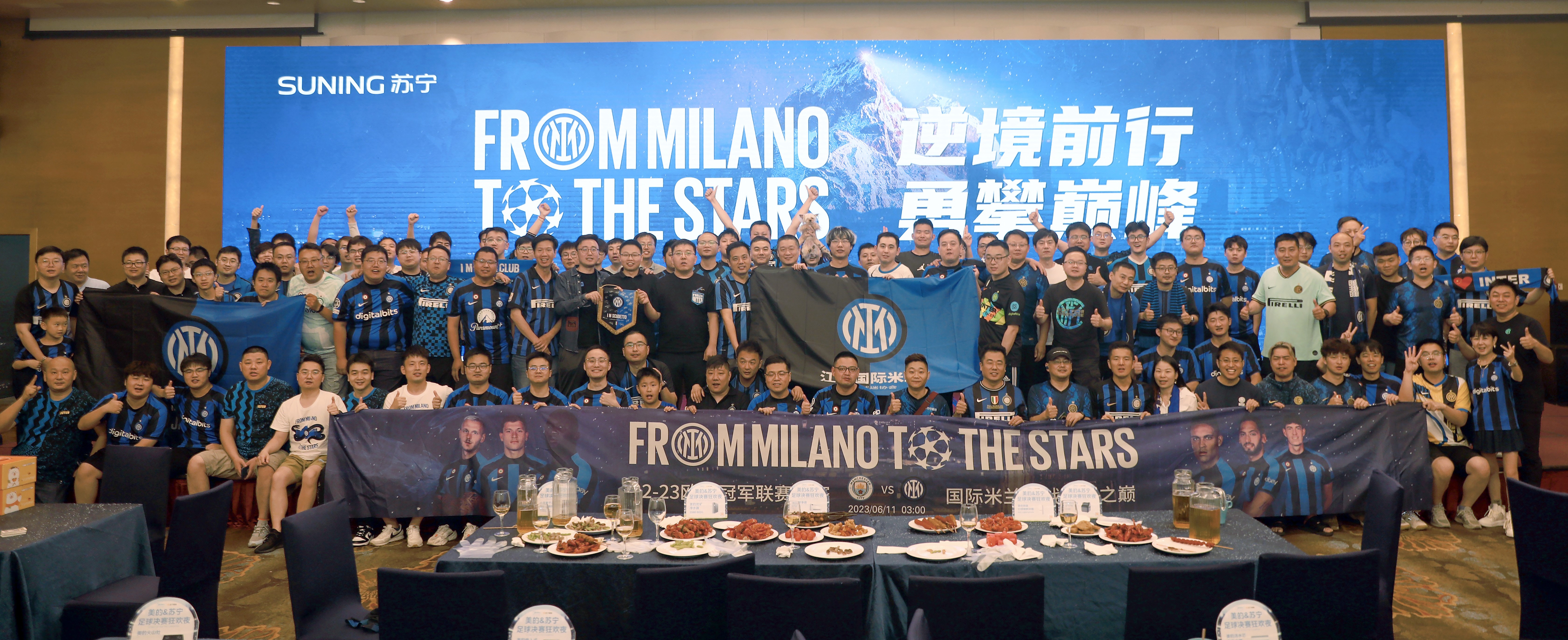 面对本赛季最重量级的比赛,苏宁集团董事长张近东和遍布在全国各地的公司员工及球迷共同观看了直播,以另一种方式为前方的国米队员加油助威。