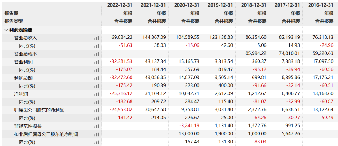 2022年,国融证券营业收入6.98亿元,同比下降51.63%;净利润由盈转亏,共计亏损2.57亿元,同比下降182.68%。这也是张智河2016年任总裁后的首次年度亏损。