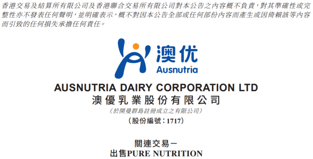 近日,澳优发布公告,披露关于出售PURE NUTRITION的交易。根据公告,Ausnutria NZ(澳优全资附属公司)、Westland及Pure Nutrition订立协议,Ausnutria NZ同意出售而Westland同意购买Pure Nutrition 60.0%的股权和债务,价格最高约为31.1百万新西兰元(约147.7百万港元)。