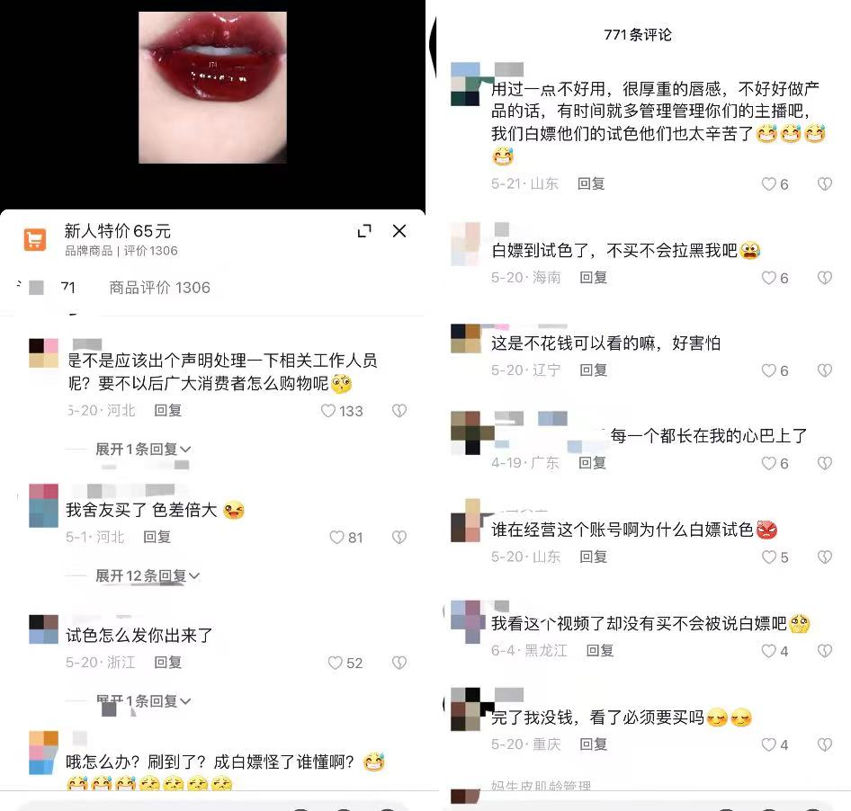 2、舆论期间当事主播仍然持续直播,是否是品牌对“白嫖试色”事件无声的抗议?