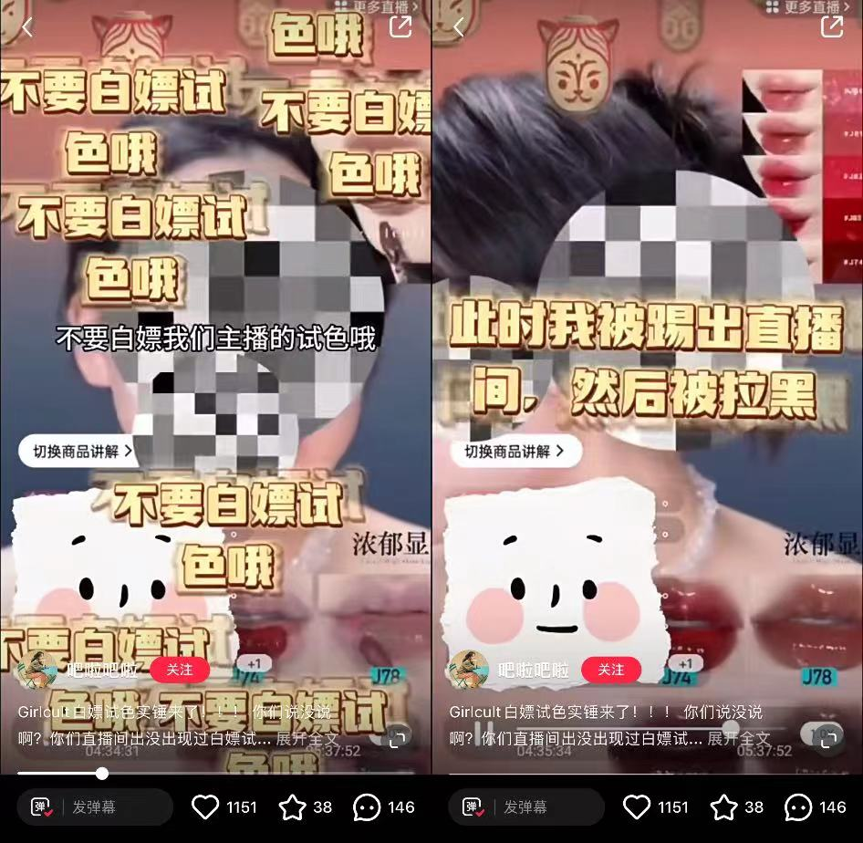 日前,小红书用户“吧啦吧啦”发帖称,Girlcult主播在直播间发表了不当言论,大意为“不要白嫖试色”,而其在直播间提问:“什么叫白嫖我的试色?”,后被踢出直播间且被拉黑。