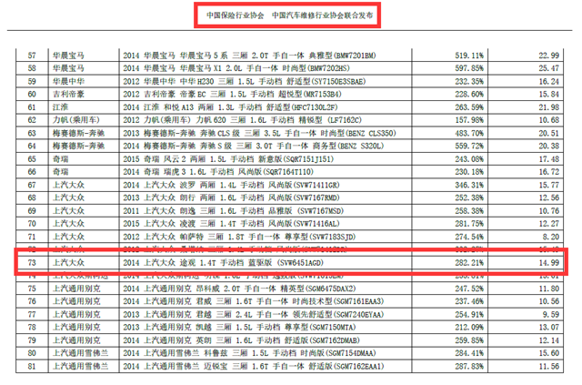 但是,小王还是哪数据来说吧!就以上海大众途观1.4T车型为例,看看主要的零部件价格怎样。(数据源自:中国保险行业协会和中国汽车维修行业协会联合发布的《2016年汽车零整比100指数》)