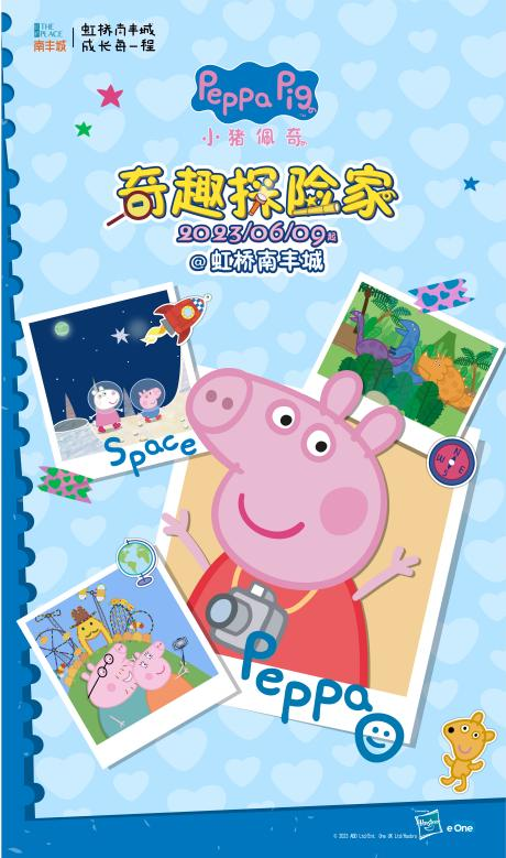 当初夏的阳光刚刚洒向大地,欢乐有爱的小猪佩奇一家就已整装待发,背包、草帽、墨镜,当然还有踩泥坑必备的雨鞋,Hooray!一起穿过青翠的草地和鸭子池塘,踏上前往虹桥南丰城的奇趣旅程。6月9日起,和家人朋友们一起坐上猪爷爷的小火车,与佩奇一起开启趣味探险吧!在这里,佩奇将带你坐上旋转木马,“滑”过恐龙乐园,在矿山挖掘宝藏,到沙漠来一次小小探索之旅……从动画来到现实世界,多个经典场景童趣还原,等你来创造这个夏日的美好回忆!