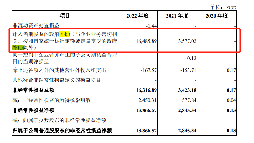 而这些政府补助将陆陆续续转化为企业的收益。2021年、2022年,高景太阳能分别将3577.02万元、1.65亿元计入了收益,占比当期净利润的33%、9%。