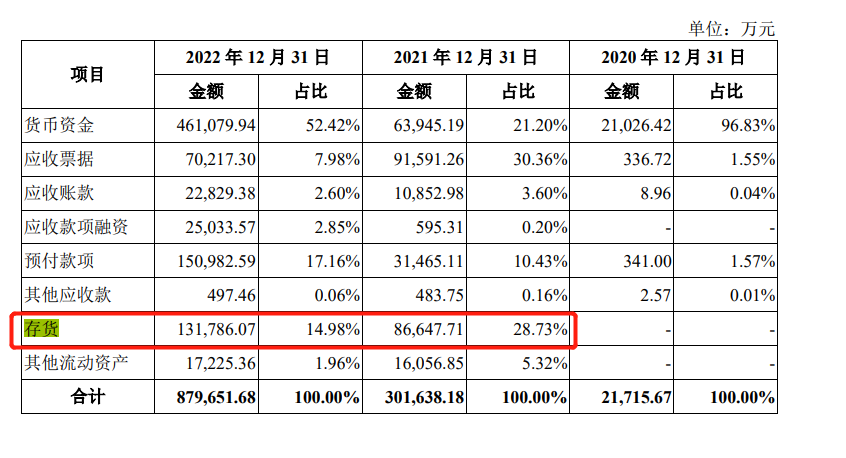 高景太阳能也没有逃过这一劫。招股书显示,2021年、2022年,其存货账面价值分别为8.66亿元、13.18亿元。