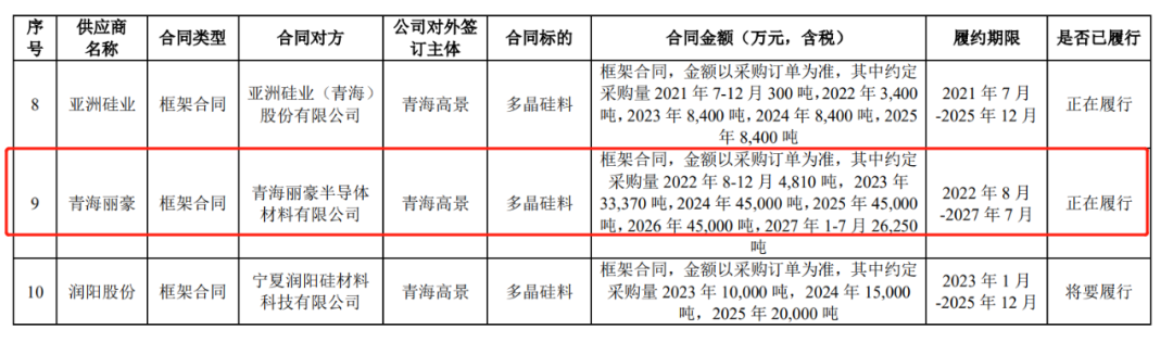 除此之外,「子弹财经」发现,高景太阳能与青海丽豪签订了一个长达5年的采购合同,合计采购19.94万吨多晶硅料。而IDG资本、爱旭股份同样是青海丽豪的股东。
