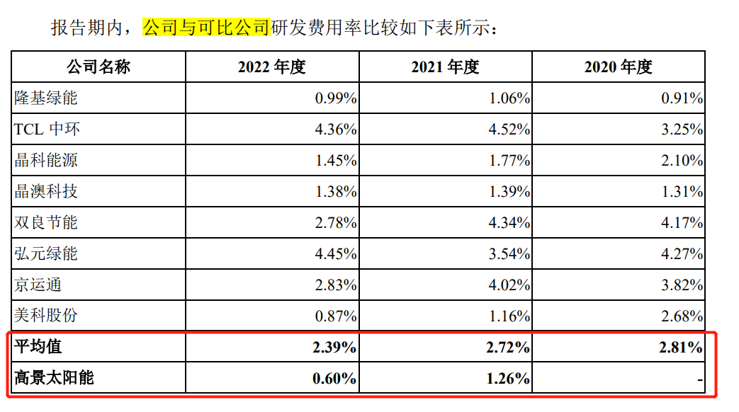或许,自1990年起就在单晶硅厂任工程师的徐志群也清楚研发对于光伏行业的重要性,但高景太阳能在招股书中表态——研发费用率低于行业平均水平,“符合自身业务发展实际”。