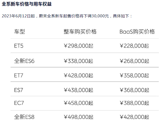 6月12日上午,上海蔚来汽车有限公司(简称“蔚来汽车”)官宣,“蔚来全系新车起售价格下调30000元”。