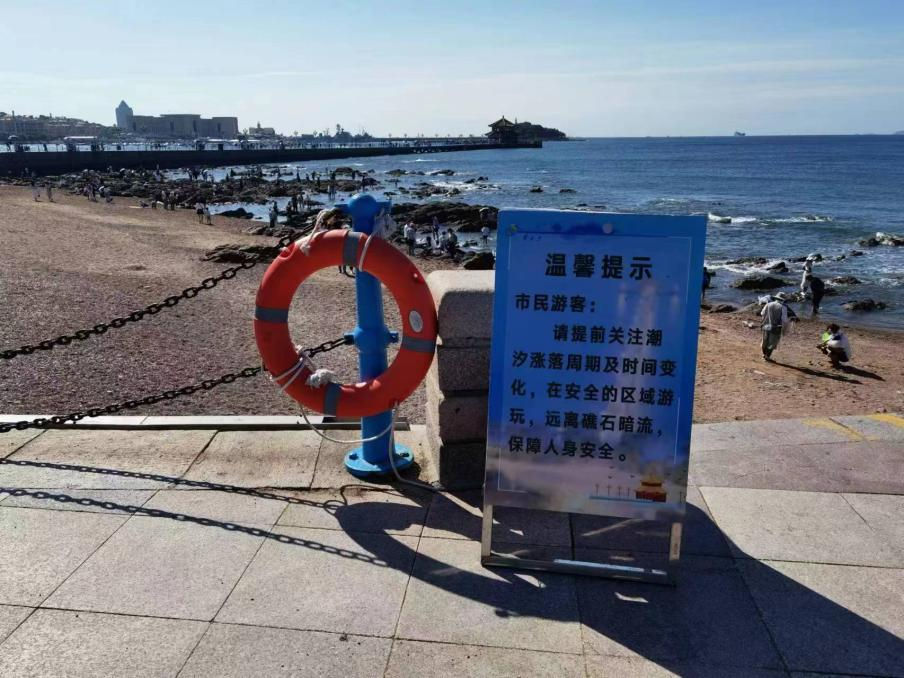 据悉,市南区在栈桥、小青岛、鲁迅公园、八大关木栈道、五四广场等沿海景区危险区域设置安全警示牌320个,提醒游客注意风浪和潮汐变化;同时,为海滨风景区危险地段海边护栏配备救生圈62个、安全绳340米,沿海街道办事处共计配备救生圈157个、安全绳1386米,设置安全警示标志264个。
