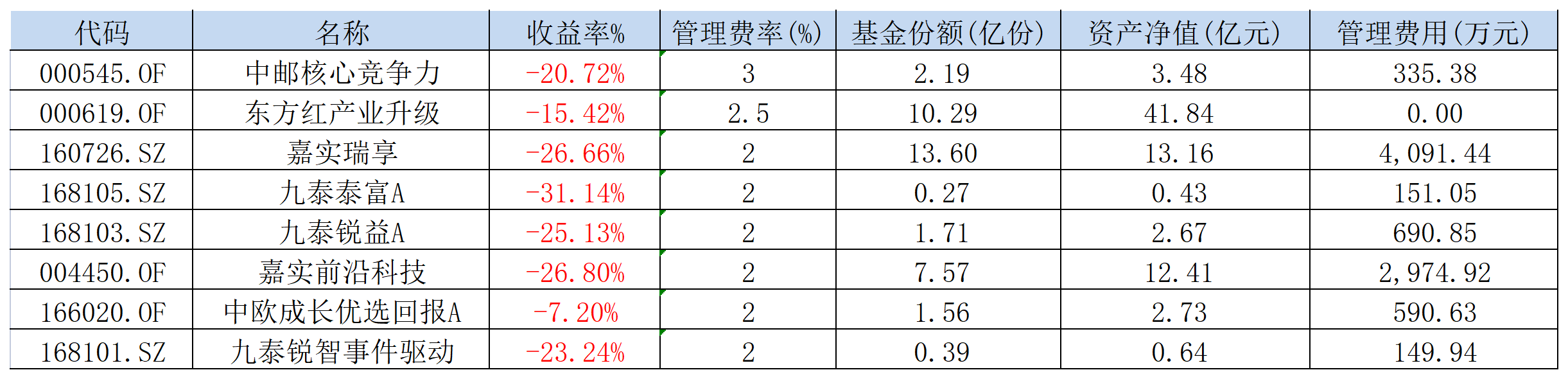 中邮核心竞争力的管理费为3%/年,2022年,基金收益率为-20.72%,收取的管理费用为335.38万元。