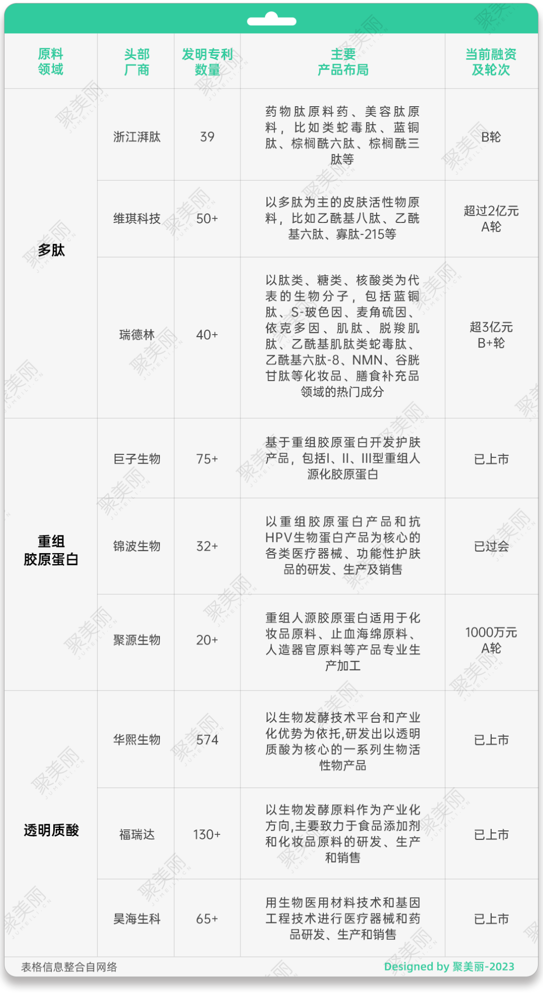 与重组胶原蛋白和透明质酸企业不同的是,国内大多数美容肽原料企业选择单一扮演着上游供应商的身份,极少数会踏足终端美容产品的领域。