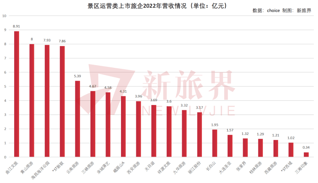 曲江文旅、黄山旅游、海昌海洋公园、*ST新联属于第二阵营,2022年度营收规模在7亿-9亿元区间。如果说300亿资金投入是新华联重整底牌的资产之“量”,那么,位居前列的营收规模,则是新华联重整底牌的资产之“质”。