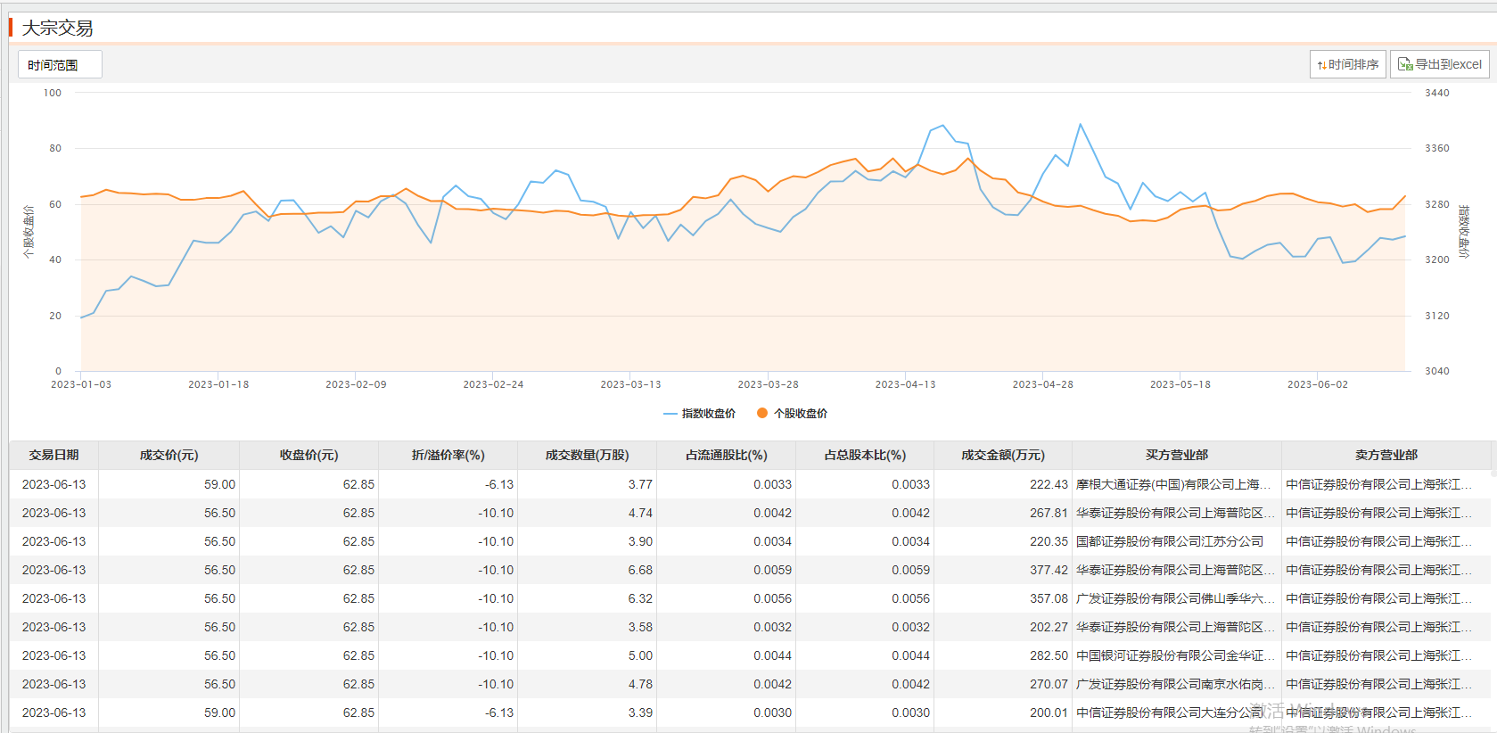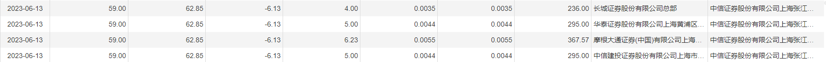 6月13日,澜起科技今日大宗交易成交140.49万股,成交额8200.82万元,占当日总成交额的5.49%,成交均价58.37元,较市场收盘价折价7.13%,其中最高成交价59元,最低成交价56.5元。