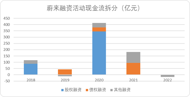 图:蔚来融资活动现金流拆分,来源:Choice金融客户端