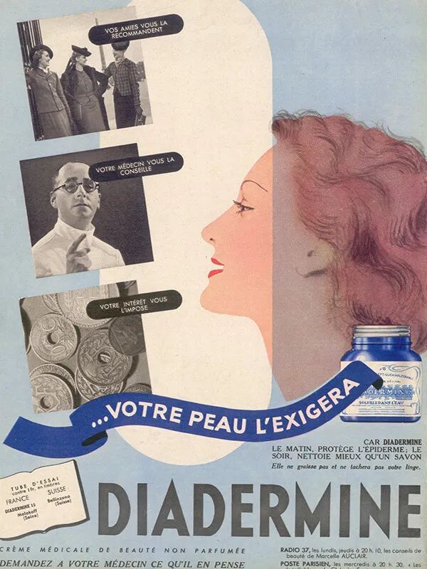 以这个配方为基础, Bonetti兄弟创建了一种皮肤病美容疗法。最初,Diadermine只在药房售卖,后来因其修复肌肤的功效卓越,知名的铝盖小罐乳霜产品很快打入了化妆品店渠道,Diadermine迅速确立了自己作为适合全家使用的“药用膏”的产品定位。这款乳霜甚至被消费者昵称为“crème mèdicale”——“神奇的修复霜”。