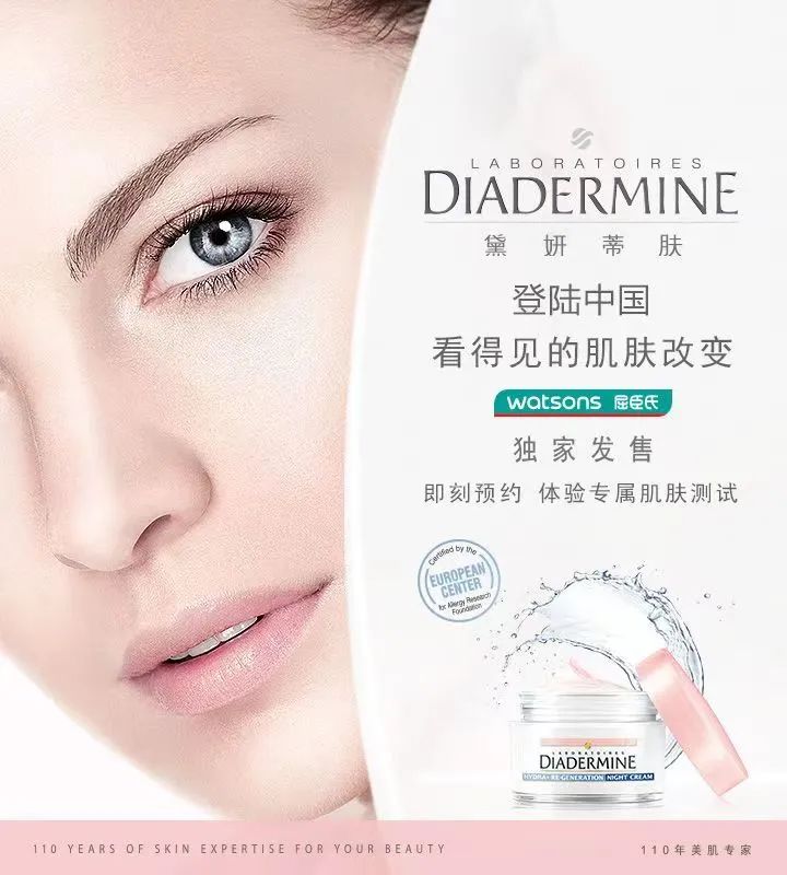 Diadermine还是第一个获得ECARF(欧洲过敏研究基金)认证的护肤品牌,其产品不仅适合一般肌肤,同样适用于敏感性肌肤,该品牌还针对25+、35+、55+的人群不同需求分别提供多种类型的产品。