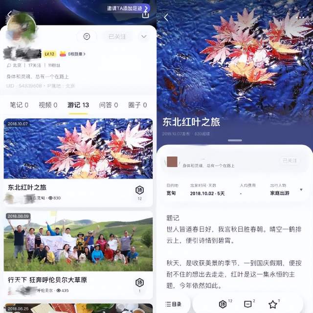 图/陌然的马蜂窝主页与游记页 来源/马蜂窝,燃次元截图