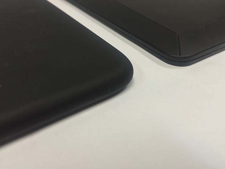 其实两者的实际厚度仅有约0.6mm的差距。但一眼看上去,Voyage好像比JDRead薄不少。这是因为两者的背壳设计大相径庭:Voyage(右)边缘做了大尺度的倒角处理,很聪明地从视觉上达到了超薄紧致的效果,JDRead(左)则是完全对称的圆滚滚的设计。▼