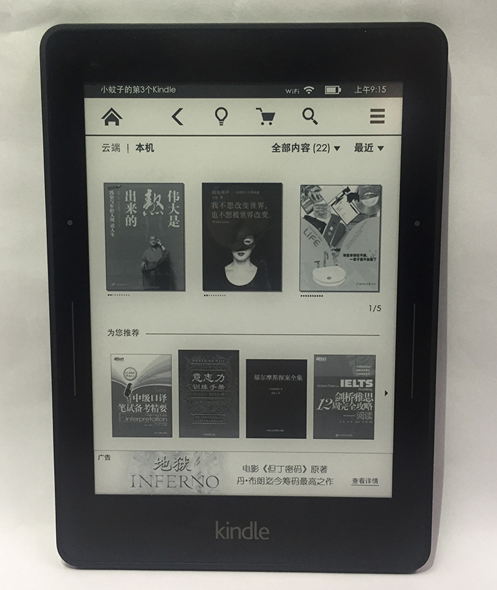 注:用于本次评测的JDRead里有京东阅读20+本,本地书籍190+本;Voyage有20+本书籍,包括从亚马逊下载的和拷进去的。