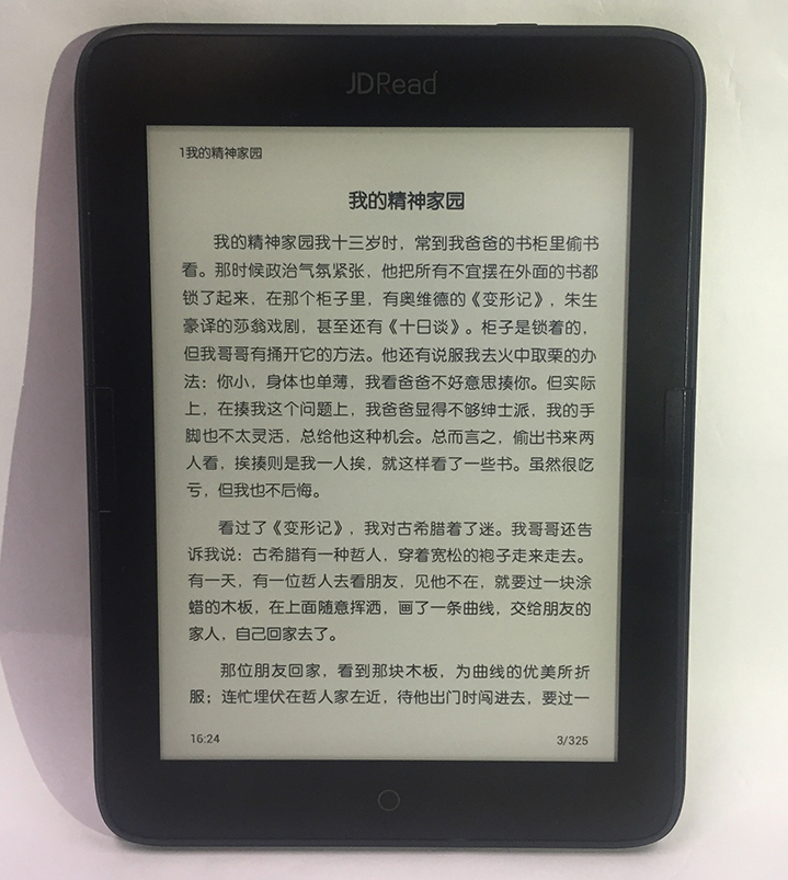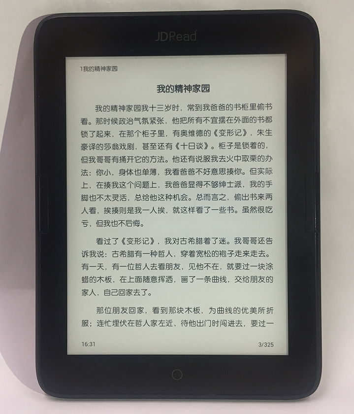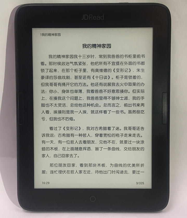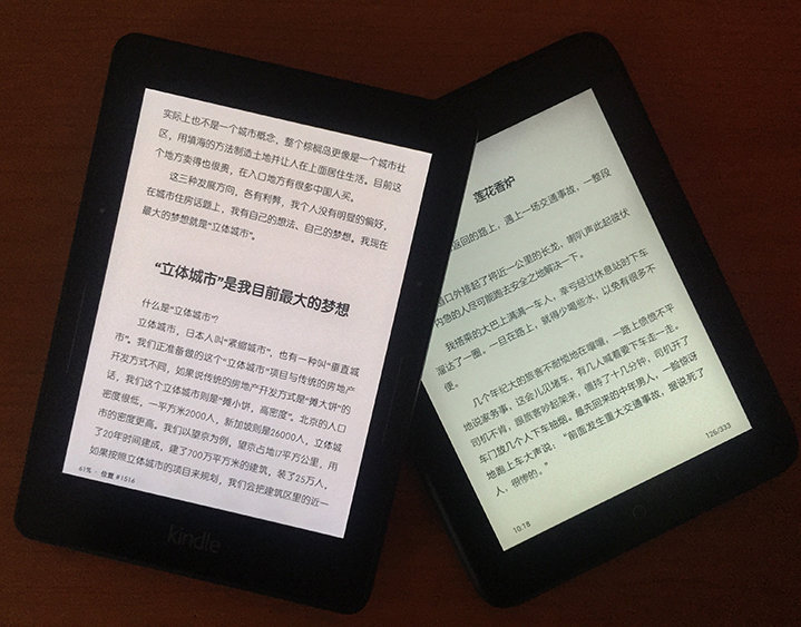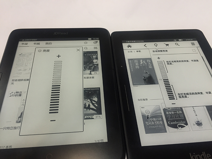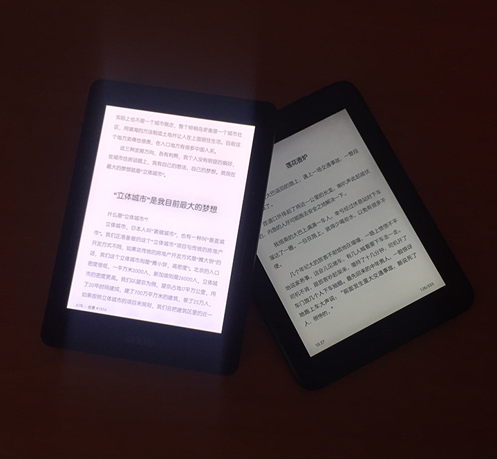可以看出,Voyage的灯光白花花,用大槑的话来讲就是“很顺眼,有品位。”相比之下,JDRead的灯给人一种煤油灯的感觉,屏幕看上去跟旧书纸张很接近,别有一番风味。