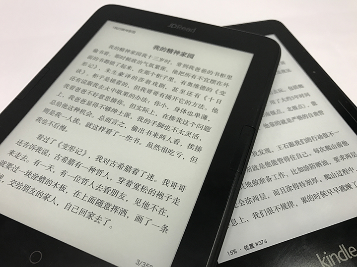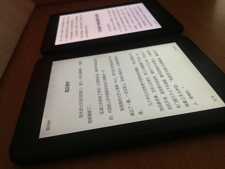 上文提过,两台机器的分辨率均达300ppi,也是目前电纸书界能达到的最高标准。关于实际使用中两者的阅读观感,我仅仅用手机镜头展示出来,不做评判,因为照片最客观。