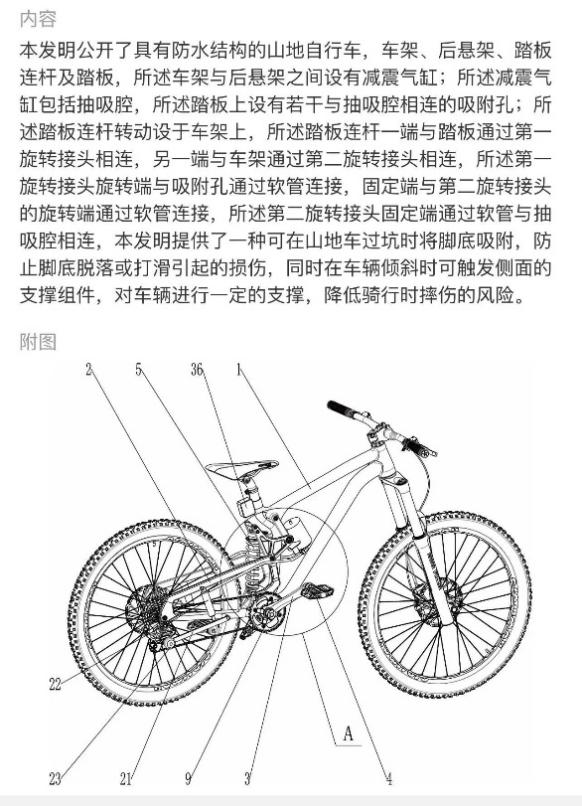 实用新型申请专利示例:“具有防水结构的山地自行车”