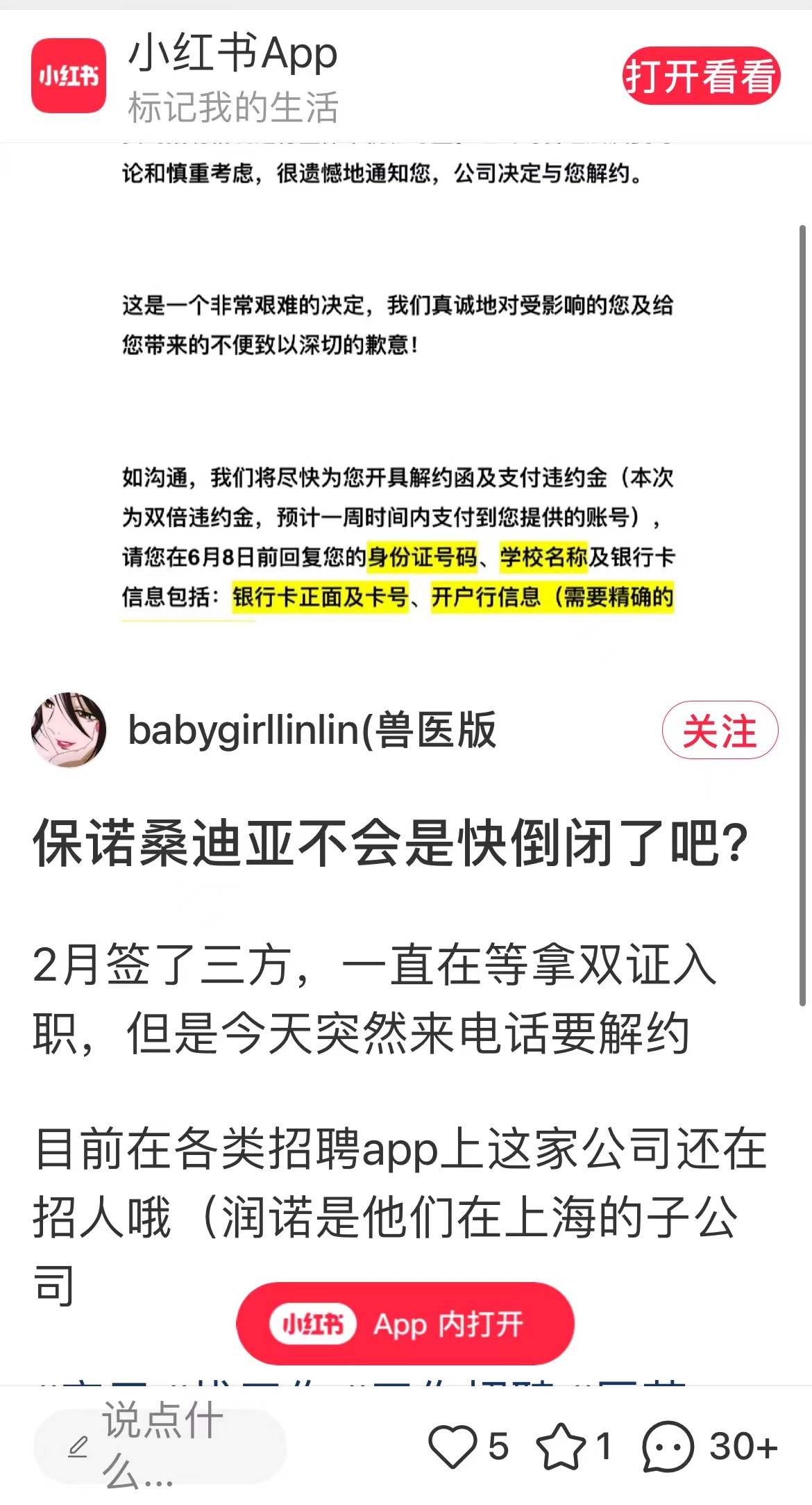 在小红书也有多条关于在保诺桑迪亚工作突然被裁的讨论。不少自称在上海、江苏、北京等各地的保诺桑迪亚前员工均表示,遇到了类似情况。“上午通知被裁,下午就撤了”。
