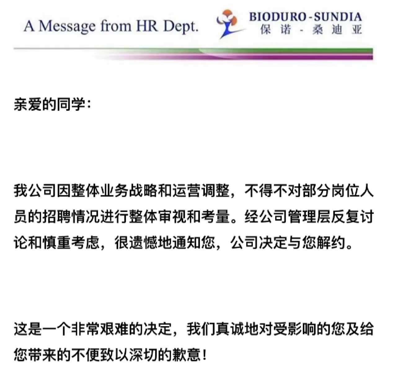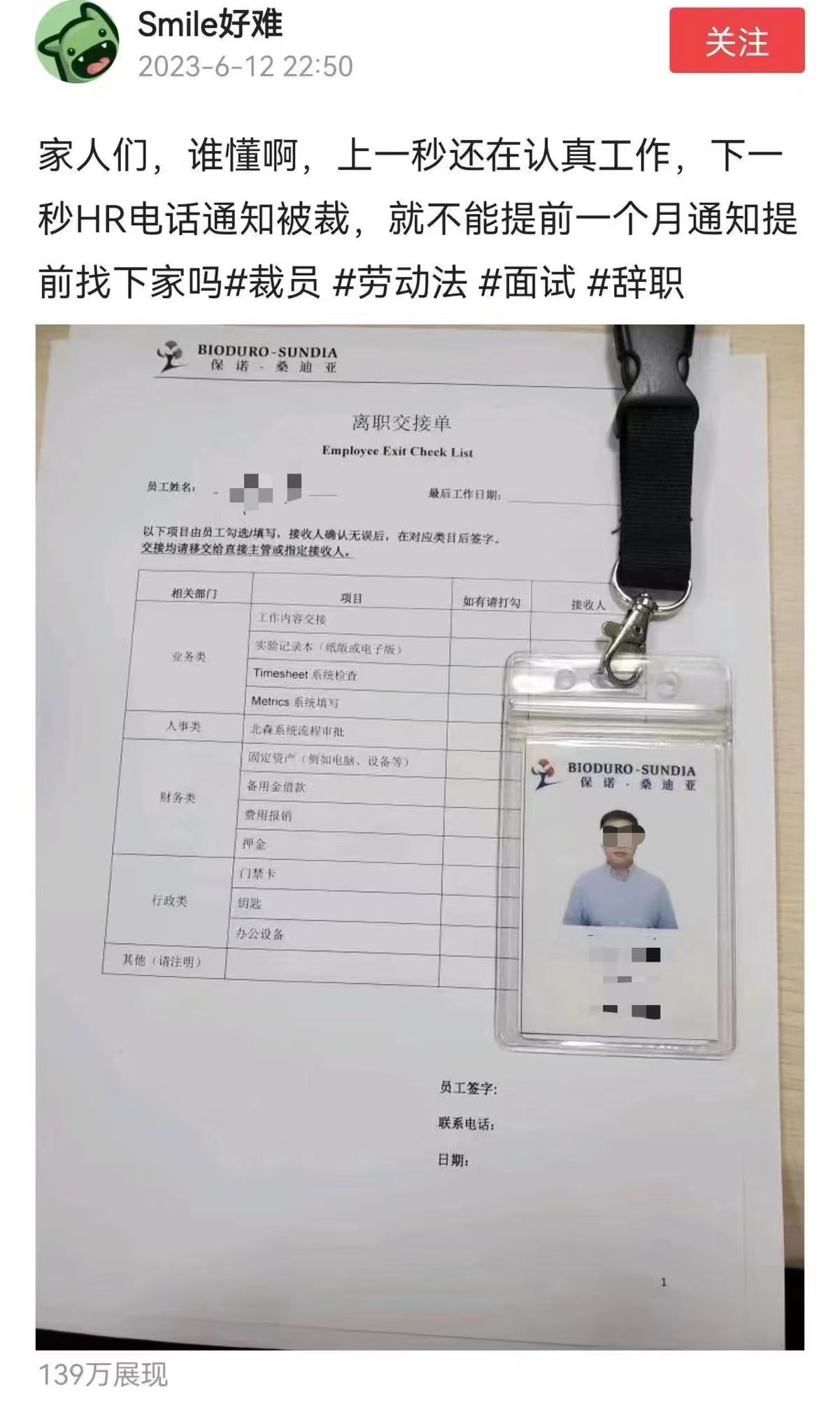 在小红书、今日头条等社交平台上也有多位自称为前述公司的被裁员工发声。在今日头条,一位自称为保诺桑迪亚员工且贴出员工工牌的用户称自己“上一秒还在公司认真工作,下一秒就被HR电话通知被裁”。