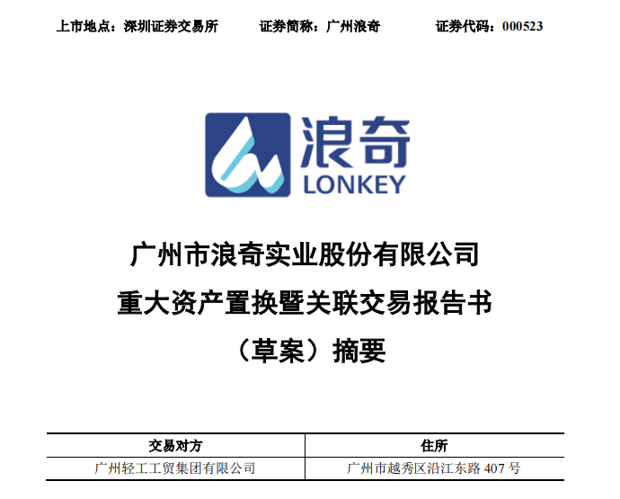 截自广州浪奇重大资产置换暨关联交易报告书(草案)摘要