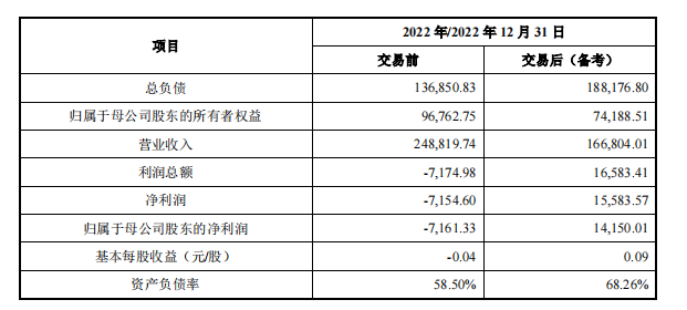 从财务数据来看,此次重组有望改善广州浪奇的财务状况。财报显示,2022年广州浪奇营收2.49亿元,同比下降3.77%;净利润为-7154.6万元,同比减少104.92%,2022年末资产负债率为58.5%。重组草案显示,模拟交易完成后,2022年末上市公司的净利润为将由交易前的-7,154.6万元转变为1.55亿元,基本每股收益为由交易前的-0.04 元/股转变为0.09元/股,盈利能力较交易前有较大提升。同时,2022年末广州浪奇的资产负债率会有所上涨,达到68.26%。