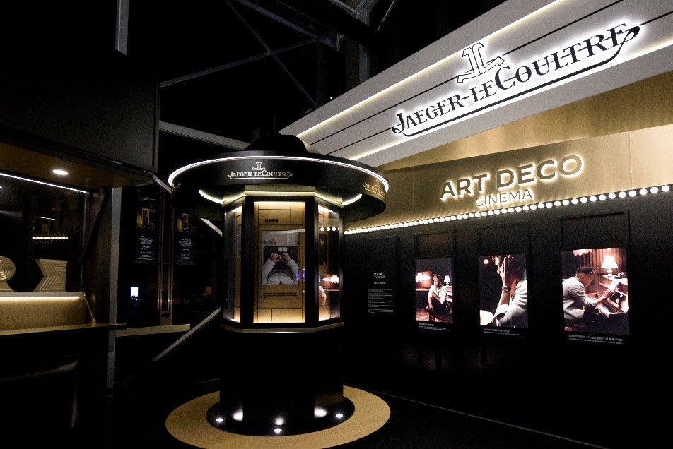 积家装饰艺术电影院每一处细节皆凝聚装饰艺术风格精萃,历史与现代交织于点、线、面层次递进的空间情境之内,精致复古的摩登风华流溢而出,令人仿佛置身于上世纪三十年代的电影布景之中,沉浸感受高级制表与电影艺术的交融对话。