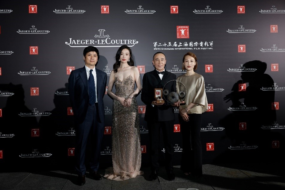 (从左至右:上海国际影视节中心主任何文权先生、积家全球代言人倪妮女士、2023年“积家电影人荣誉奖”获得者曹保平导演、积家中国董事总经理袁立维女士)