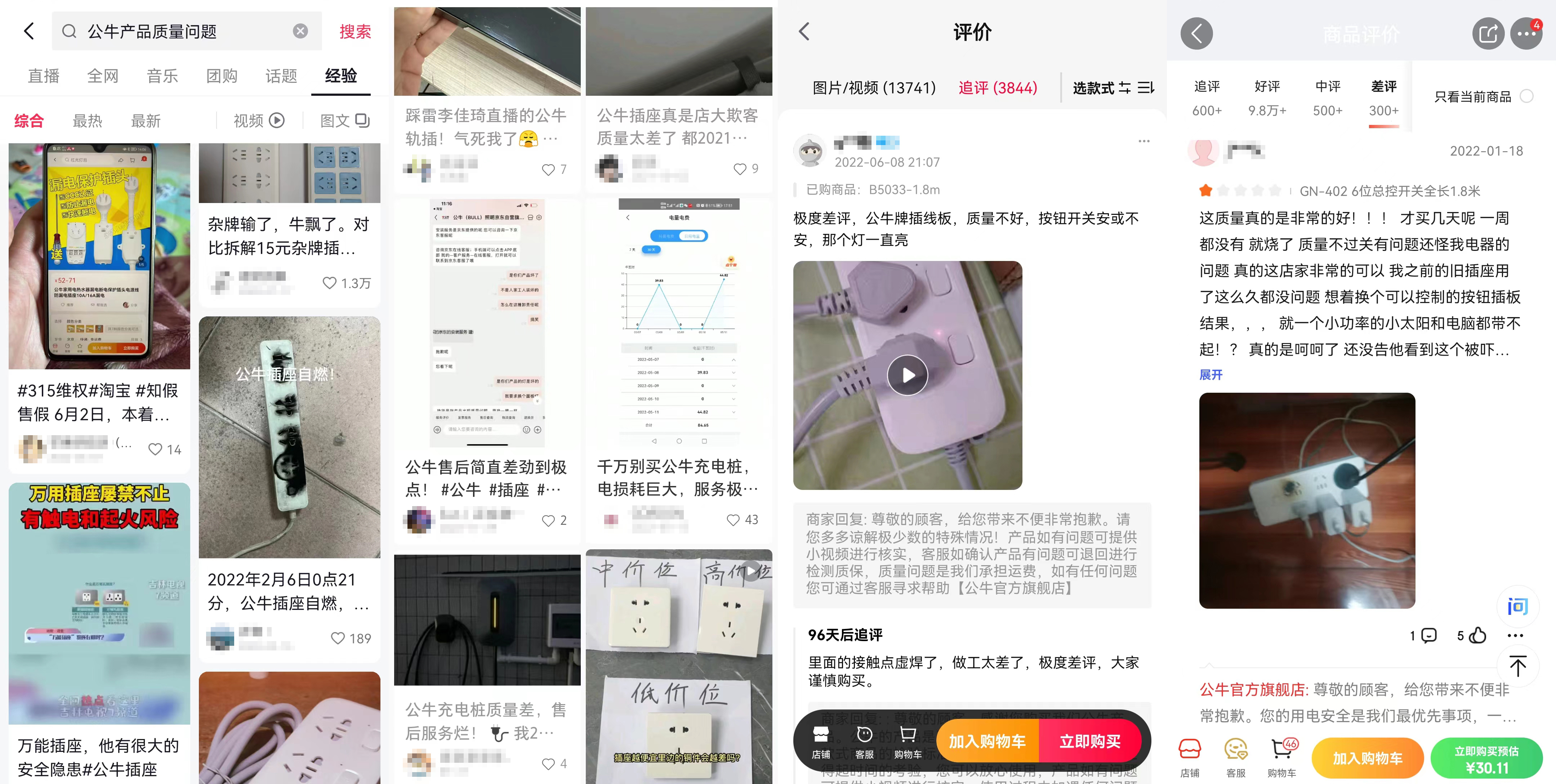 而这样的问题,正发生在“插座大王”公牛身上。子弹财经注意到,无论是在抖音、小红书等社交平台,还是在天猫、京东等电商平台,抑或是在黑猫投诉等投诉平台上,都能看到关于公牛产品质量问题的投诉。