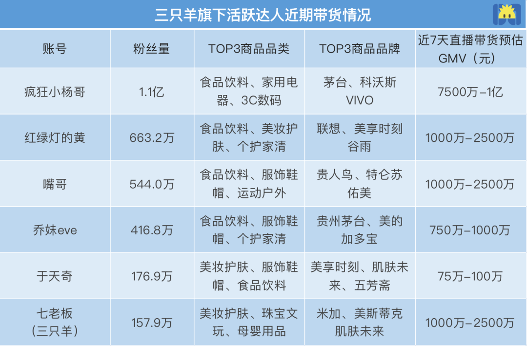 某消费品牌直播电商负责人晨武观察到,和已经带出多个千万粉丝徒弟的辛巴相比,三只羊旗下的主播暂未形成鲜明的IP和差异化的优势品类,多数人还需要小杨哥的引流,带货品牌也以主打性价比的中小品牌为主。
