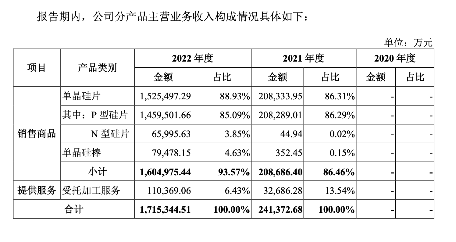 高景太阳能成立于2019年7月,距今不到四年。该公司为专业化的光伏硅片企业,主营业务集中在光伏单晶硅棒、单晶硅片的研发、生产和销售,产品包括182mm、210mm等大尺寸单晶硅棒和单晶硅片。