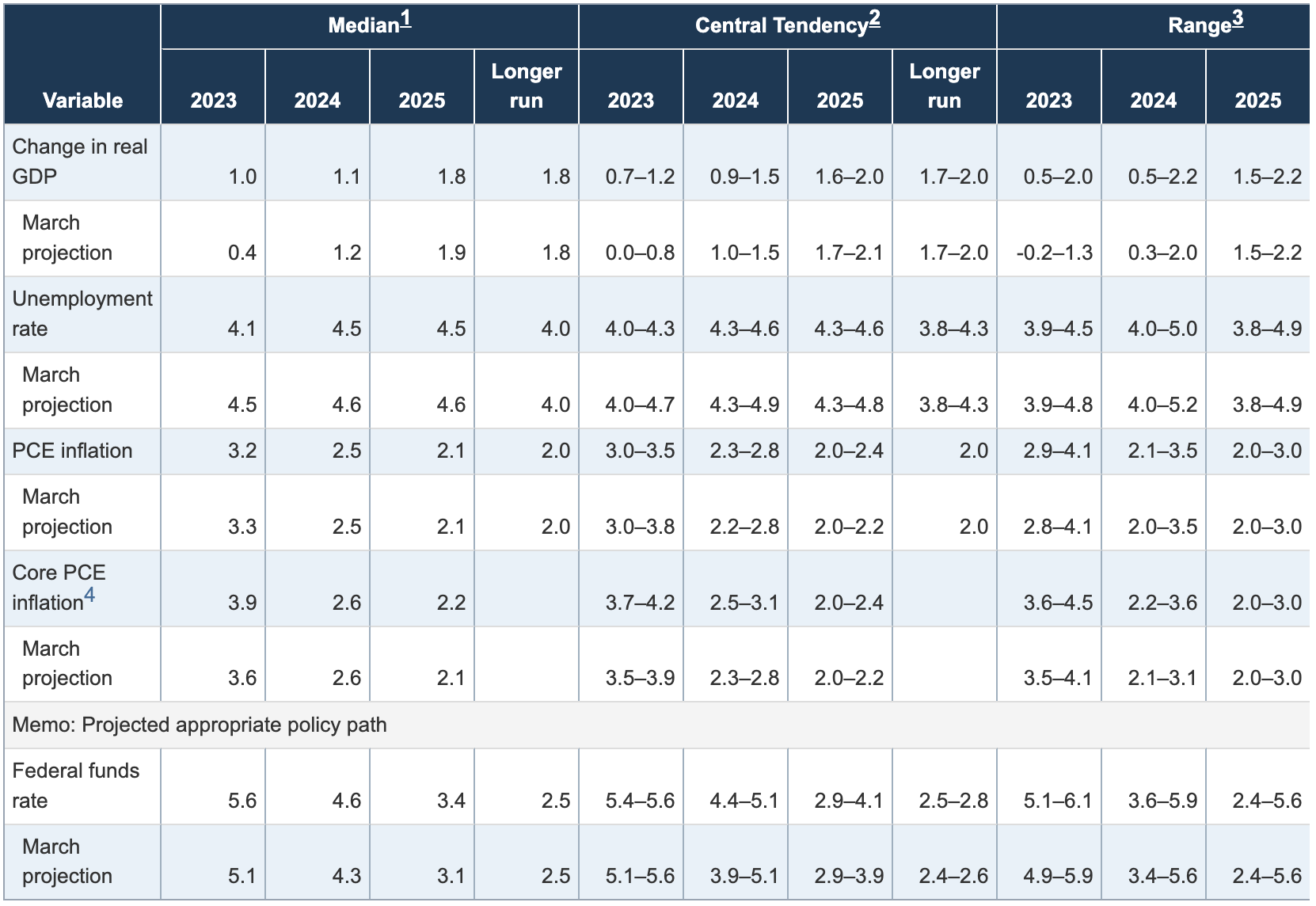 决策者们还上调了对未来几年的利率预期,预计2024年和2025年的联邦基金利率将分别为4.6%和3.4%,高于3月时预计的4.3%和3.1%。