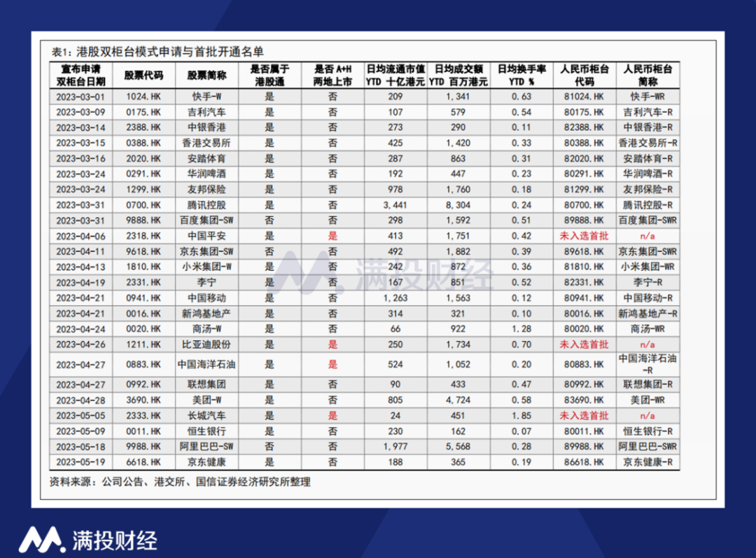 值得注意的是,在首批入选的24只双柜台标的中,中国海洋石油(00883.HK/600983.HK)是唯一一家A+H两地上市的股票,说明A+H公司并非不能入选双柜台,两地上市也未必是绝对的限制因素,可以关注后续可能会有更多相关标的。
